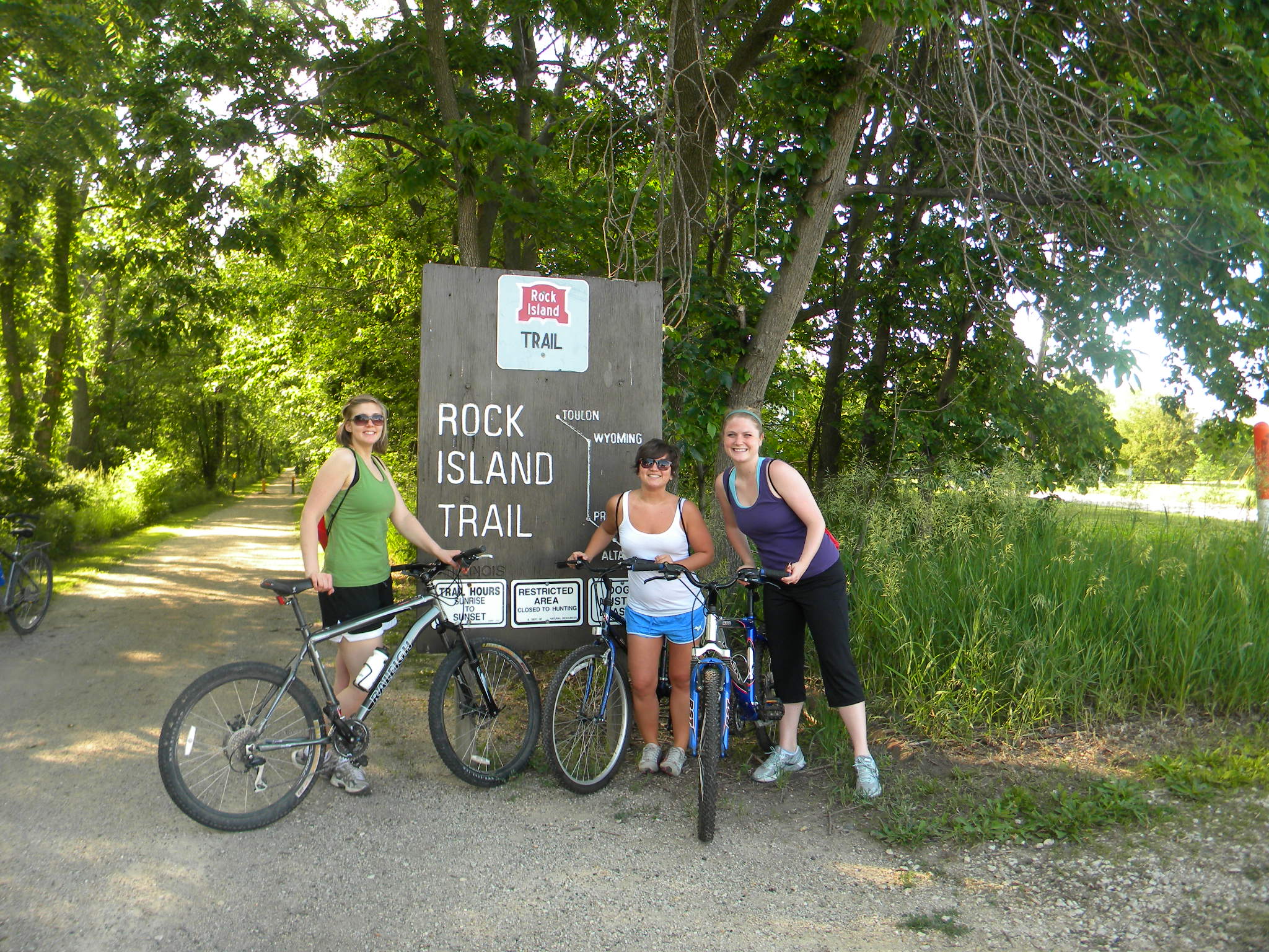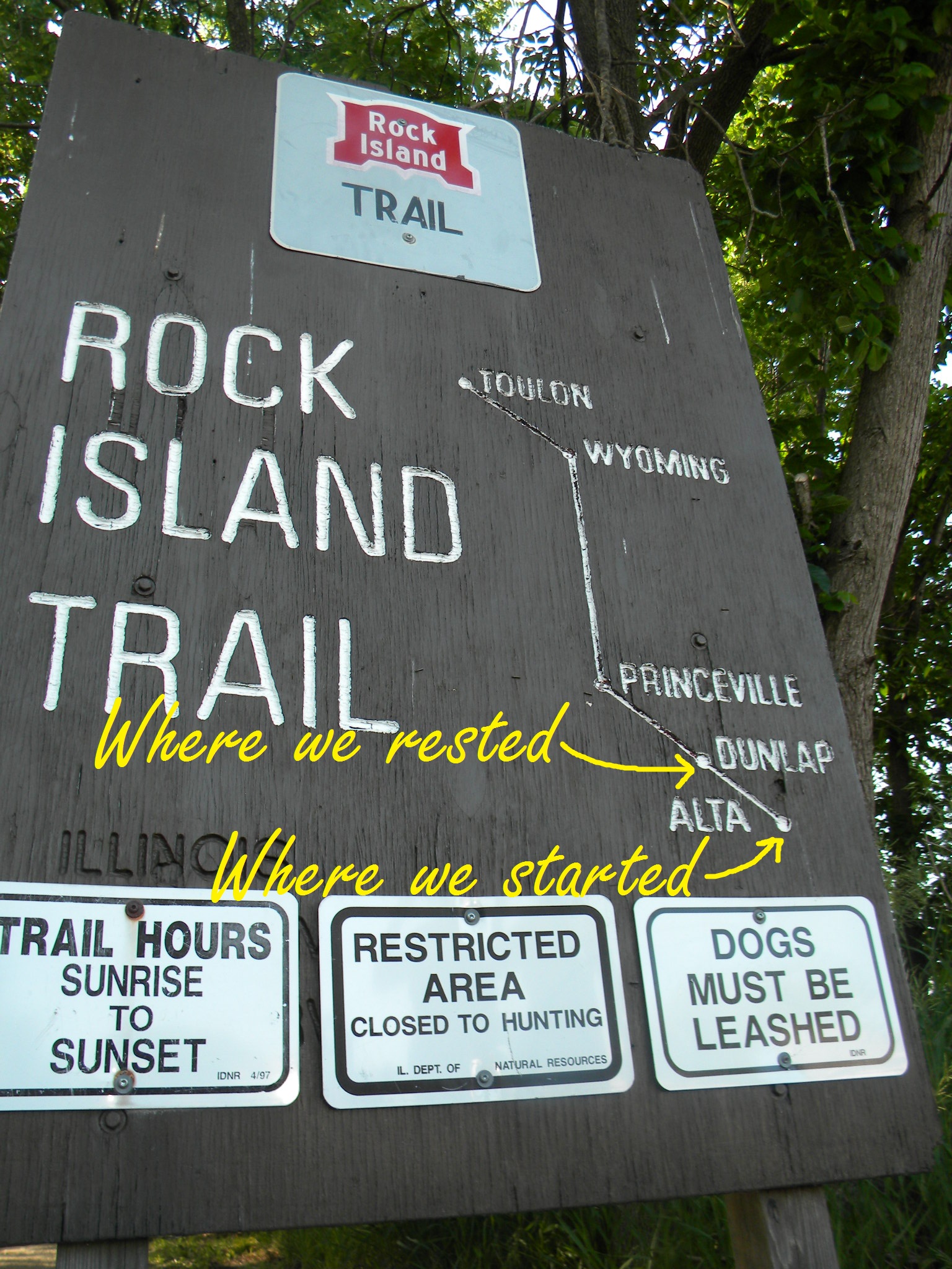 I decided to kick off my summer Central Illinois tour with a bang (and by bang I mean a bruised rear, skinned up knee and closed ice cream shack) by taking a leisurely bike ride down the Rock Island Trail (RIT) starting in Alta with a mid-trailblazing break at Jane’s Icebox in Dunlap (approximately 8.8 miles total).