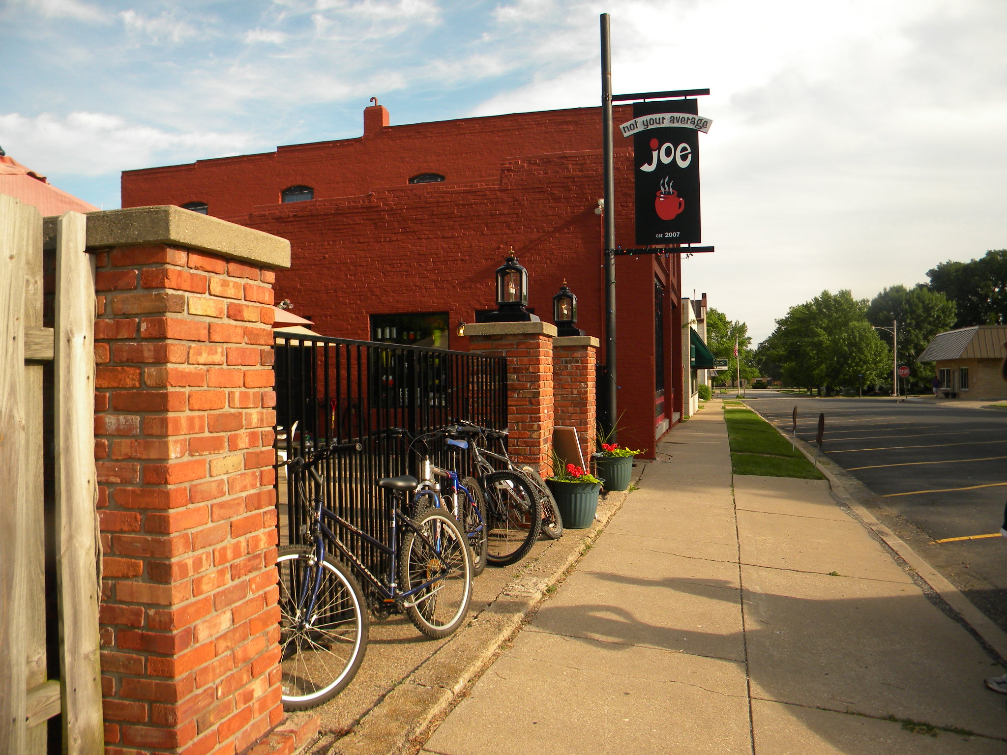 …oh wait. Jane’s is CLOSED on Wednesday’s at 4pm. (So much for my “preplanning”) OK–think fast, where else can I get a sweet treat because I’m DYING here!? (this is what I was thinking in my head) I guess we’ll follow these random signs that say “JOE” on them to see where they take us. (See that little white J with the red dot and the arrow in the bottom right hand corner of the picture?) I mean, really, this “JOE” person could be some weird sick freak and TP the Town could be over faster than you can say “Dunlap Chainsaw Massacre.” I let my strange mind get the best of me because “JOE” turned out to be a darling coffee shop, Not Your Average Joe.