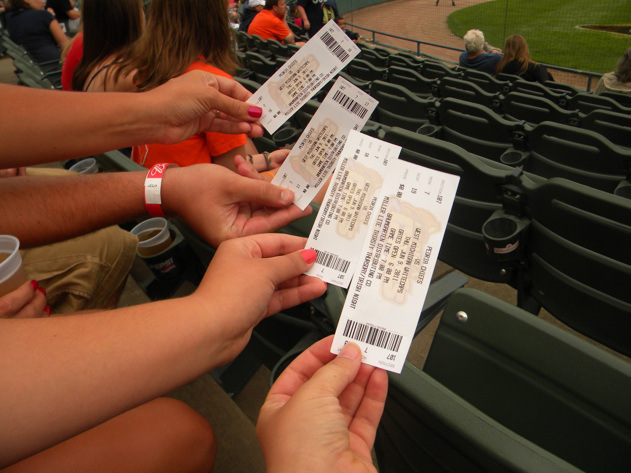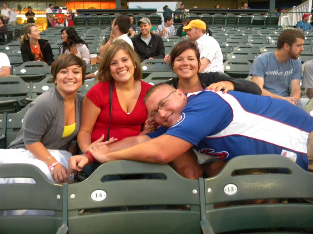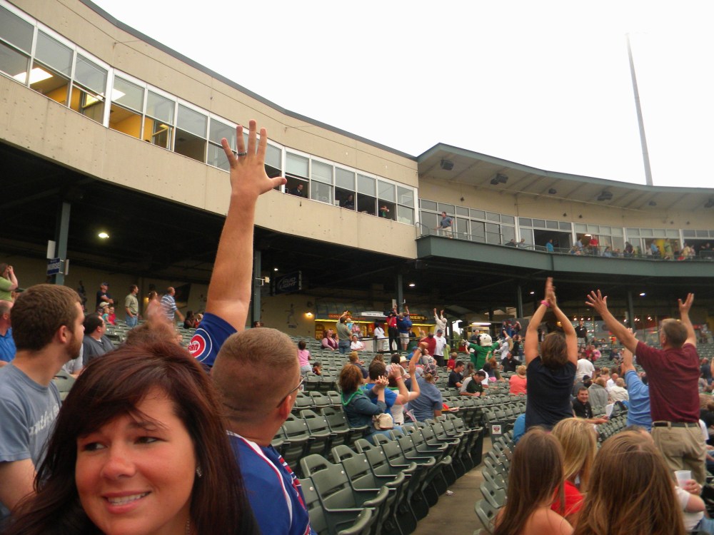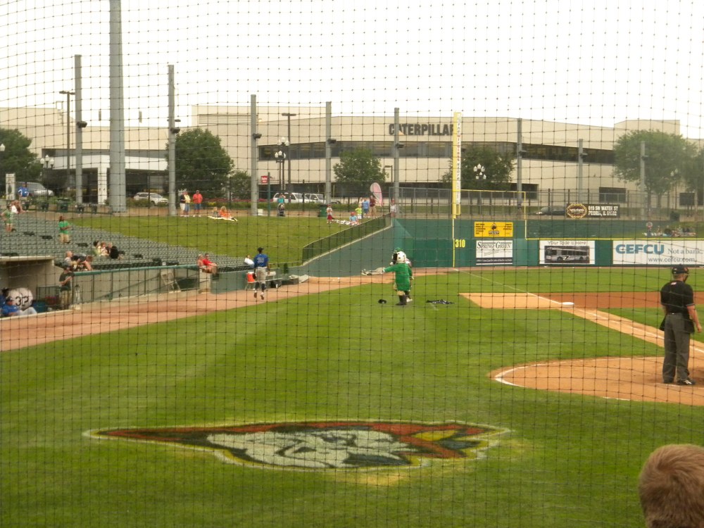 Ok–truthfully, last night I was burnt out. I wasn’t pumped about coming home from work just to turn around and go back out and hit the town. I came THISCLOSE to bailing, but I’m committed to this blog, so I sucked it up and headed out to the Peoria Chiefs Game last night with my BFF Jess, her husband Jim and her cousin Ellie. The Chiefs are the Cubs minor league baseball farm team. They play at O’Brien field in downtown Peoria (also where the Bradley Braves baseball team plays).