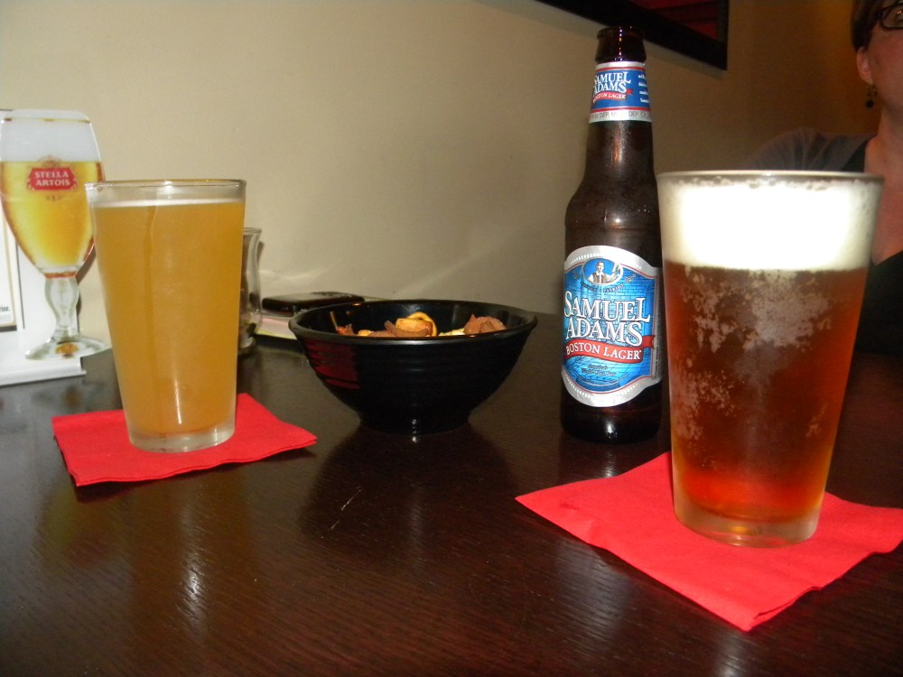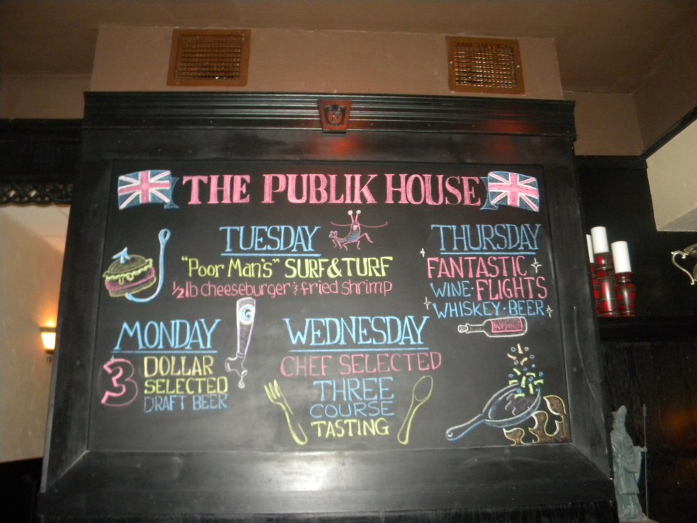 You can’t tell, but that little bowl is full of Gardetto’s–it was the perfect pairing with our brews. I got a Summer Shandy and Linds drank Sam Adams. To be honest, we weren’t really feeling the over 40 crowd at the Tavern…maybe it was too early in the night (7pm) or Thursday just isn’t a bumpin’ night for them…either way, we decided to roll out and head down the world’s most beautiful drive to Publik House (also located on Prospect, if you didn’t catch that).