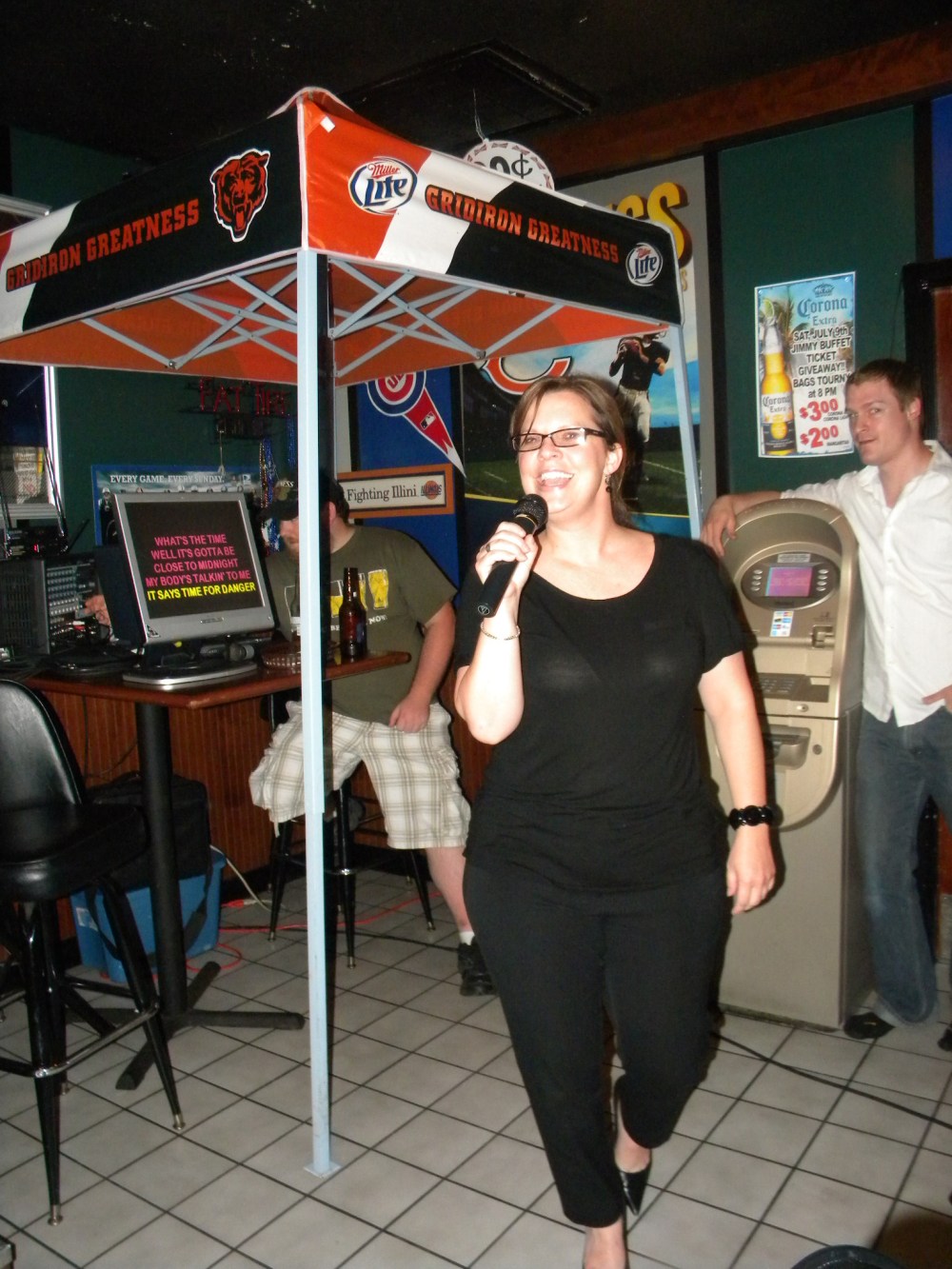 2. dude in the background of her karaoke shot is totally posing. no one leans that casually, outside of eddie bauer ads.