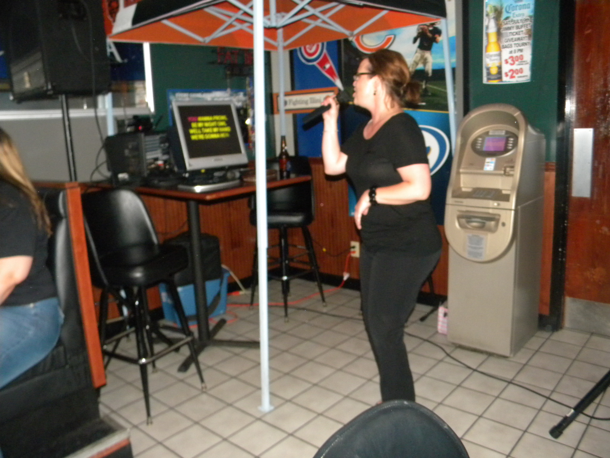 I am not actually that tall. They were holding me up to be normal human size. So after I exchanged a few laughs with Joe and Nate, I met my new crew at the karaoke table. Linds was already on deck to sing, but first we had to listen to a few other people “sing” so we entertained ourselves.